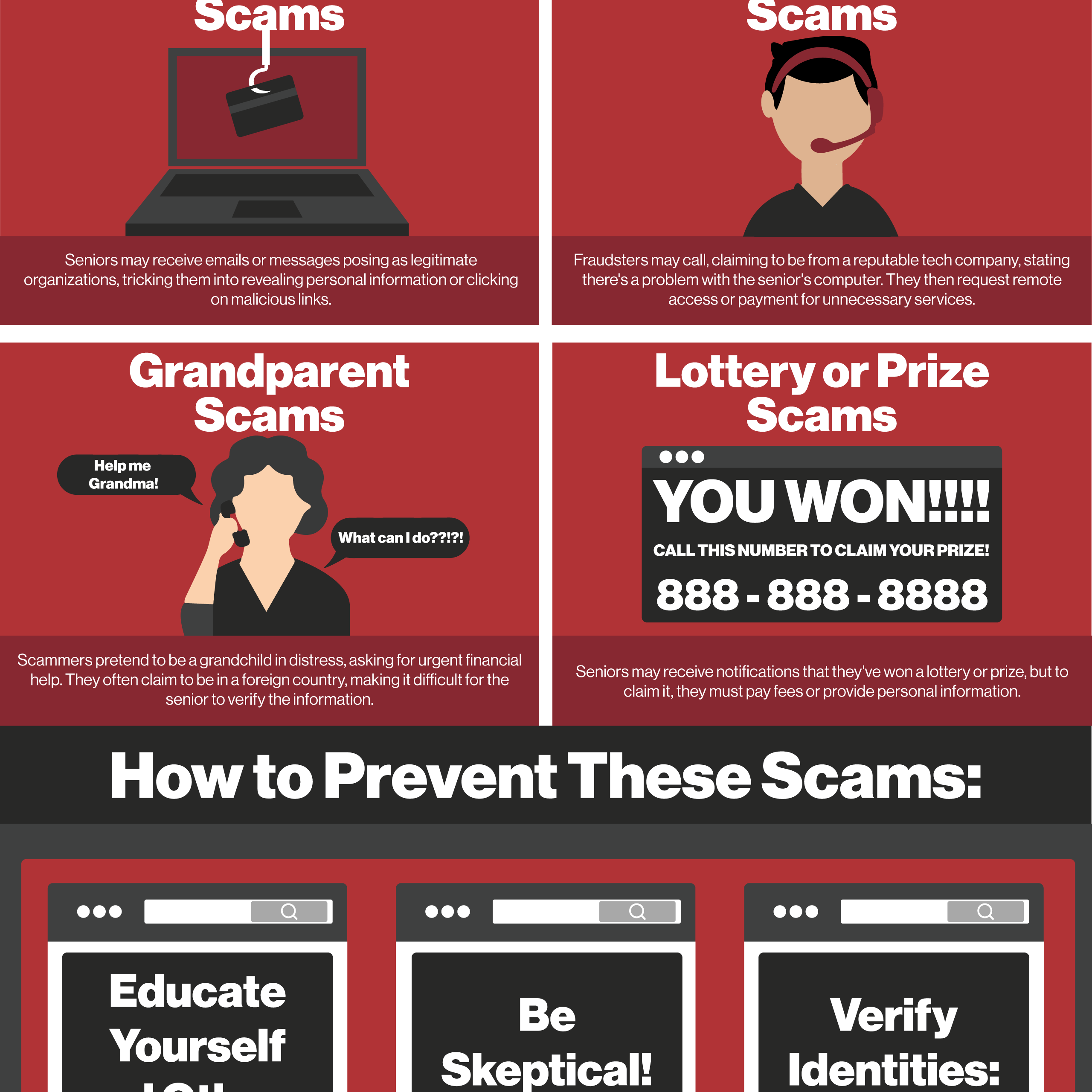 My first solution was a Cyber Crime infographic dedicated to an elderly audience or someone who wants to teach their elders about the threat of Cyber Crimes. My second solution was to create an infographic that provided statistics about Cyber Crime. This is dedicated more towards an college student who is interested in learning about how Cyber Crime affects the world.